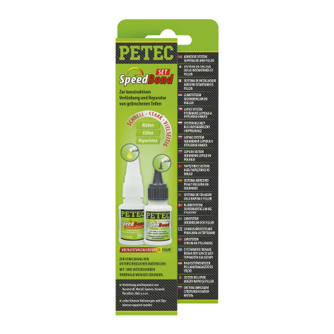 Selbst kleinste Kunststoffteile können verklebt und stabilisiert werden wie z. B. Halterungen und Clips. In Verbindung mit SpeedBond Filler können Risse, Fugen, Löcher und Spalten überbrückt werden. Speedbond Aktivatorspray beschleunigt die Aushärtung des Hochleistungsklebstoffes.Selbst kleinste Kunststoffteile können verklebt und stabilisiert werden wie z. B. Halterungen und Clips. In Verbindung mit SpeedBond Filler können Risse, Fugen, Löcher und Spalten überbrückt werden. Speedbond Aktivatorspray beschleunigt die Aushärtung des Hochleistungsklebstoffes.
