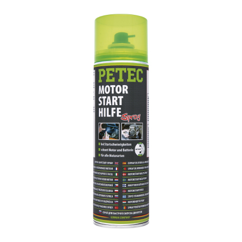 PETEC Motorstarthilfe-Spray ist ein zuverlässiges Kaltstartmittel für alle Motorarten (Benzin-, Diesel-, Zweitakt- und Viertaktmotoren) z. B. PKW, LKW, Motorrad, Boot, Rasenmäher, Bau- und Landmaschinen.