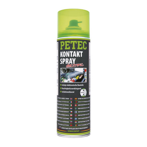 Zur Reinigung, Wartung und Pflege sowie Langzeitkorrosionsschutz von elektronischen Bauteilen und Kontakten (z. B. Kabel-, Steck- und Klemmverbindungen, Sicherungskästen, Sicherungen, Relais, Zündverteilerkappen, Zündkerzen, Generatoren, Anlasser, Batteriepole u.v.m.). PETEC Kontaktspray electronic verhindert Kriechströme und Spannungsverluste.