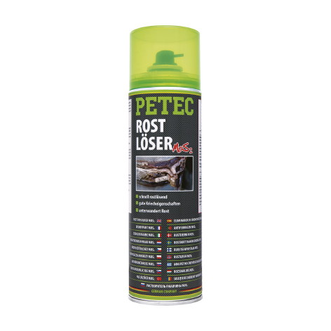 Zum schnellen Lösen von festsitzenden Verbindungen, wie z. B. Schrauben, Muttern und Bolzen. Rostlöser dringt durch eine hohe Kapillarwirkung und sehr gute Kriecheigenschaften auch in kleinste Zwischenräume. Durch den Einsatz von MoS2 kann PETEC Rostlöser auch bei extremen Temperaturen und Druckbelastungen eingesetzt werden. Rostlöser – für festgerostete Schraub- und Metallverbindungen Schmiermittel – für bewegliche Teile, beseitigt Quietschgeräusche Konservierungsmittel – entfernt Flugrost und konserviert langfristig Korrosionsschutz- & Pflegemittel – schützt nachhaltig vor Korrosion.